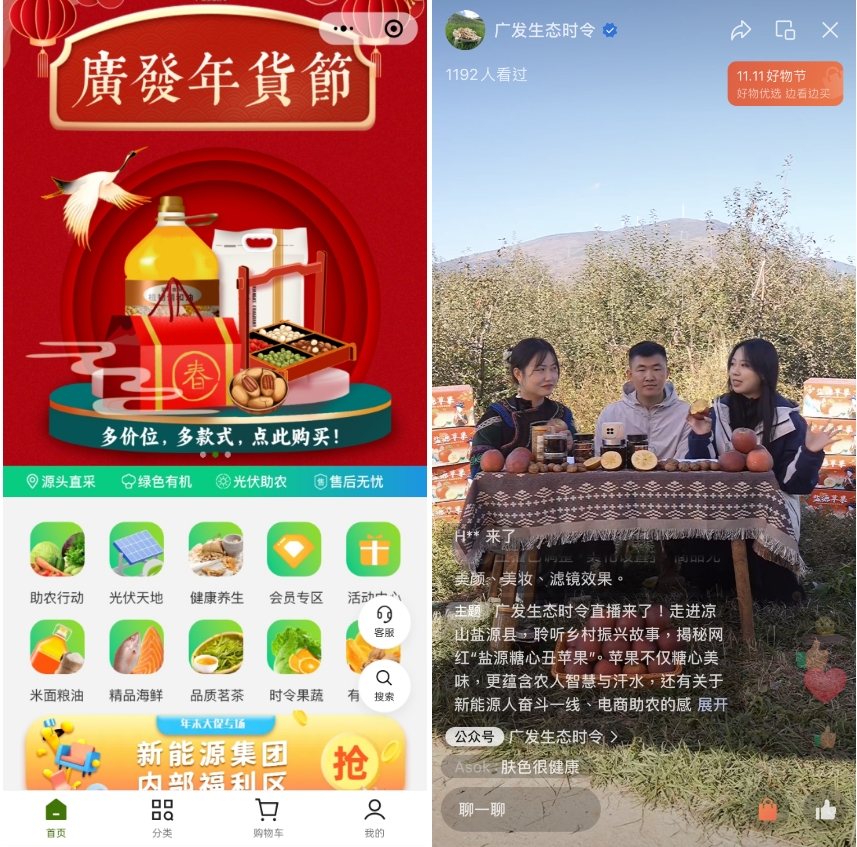 “广发生态时令”小程序上线运营、开展助农直播