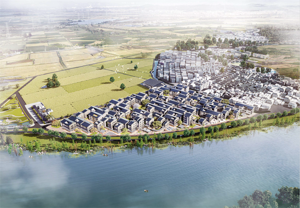 该作品以不同的户型产品构建若干居住组团,形成产居一体化的街区肌理。利用建筑模块化通用性、高效快捷、节能环保等优势与岭南传统建筑形式相结合,突出乡土文化特点,着力打造传统特色与现代光伏技术相融合的高品质绿色宜居村庄,寻找出一条具有新时代特色的乡村复兴能源之路。